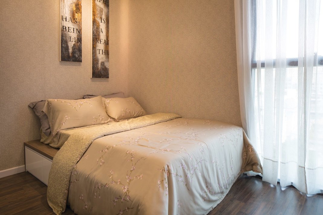 Phòng đa năng bố trí phía sau phòng khách, không quá riêng tư bởi chỉ sử dụng một hệ lam gỗ như một vách ngăn nhẹ. Chiếc sofa bằng da đặt ngay bên cạnh vách kính, khai thác tối đa tầm nhìn. Đây là nơi lý tưởng để đọc sách, ngắm mảng xanh bên ngoài và mặt sông Sài Gòn lấp loáng dưới ánh mặt trời. Hai phòng ngủ có diện tích vừa đủ. Các lựa chọn về giấy dán tường, giường cao với chăn drap gối nệm và ánh sáng vàng ấm khiến cho người ta cảm nhận được rằng đây thực sự là không gian để nghỉ ngơi, thư giãn. Phòng ngủ chính có khu vực làm việc riêng, bồn tắm rộng và tràn ngập ánh sáng tự nhiên.