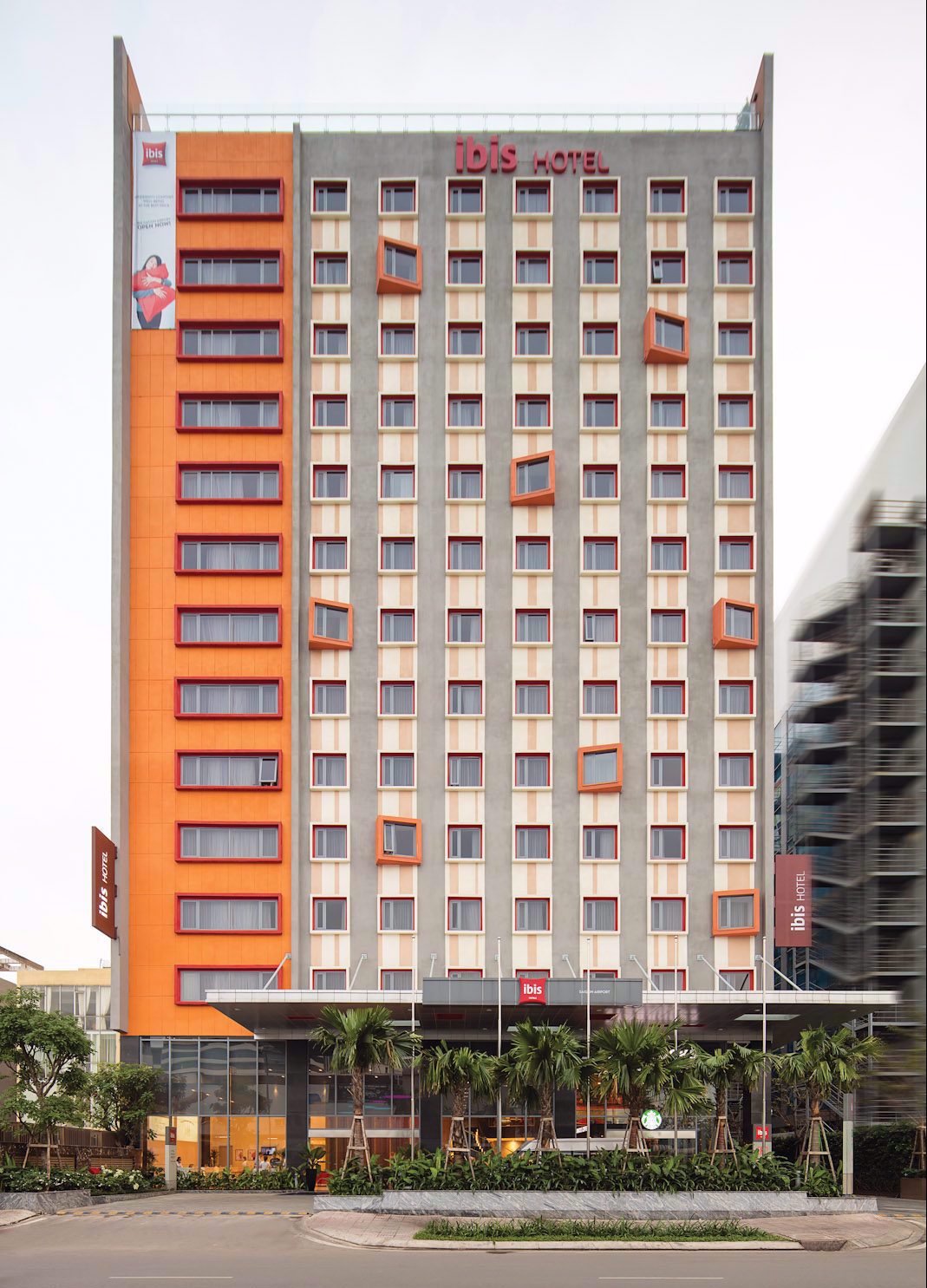 Nếu có dịp ra sân bay Tân Sơn Nhất qua đường Hồng Hà trong thời gian gần đây, chắc hẳn bạn sẽ nhớ đến tòa nhà này, bởi nó rất ấn tượng với hình khối mặt tiền hiện đại, trẻ trung, màu sắc tương phản và những ô cửa sổ xếp so le tạo hiệu ứng 3D rất thú vị. Đó là Khách sạn Ibis Saigon Airport.